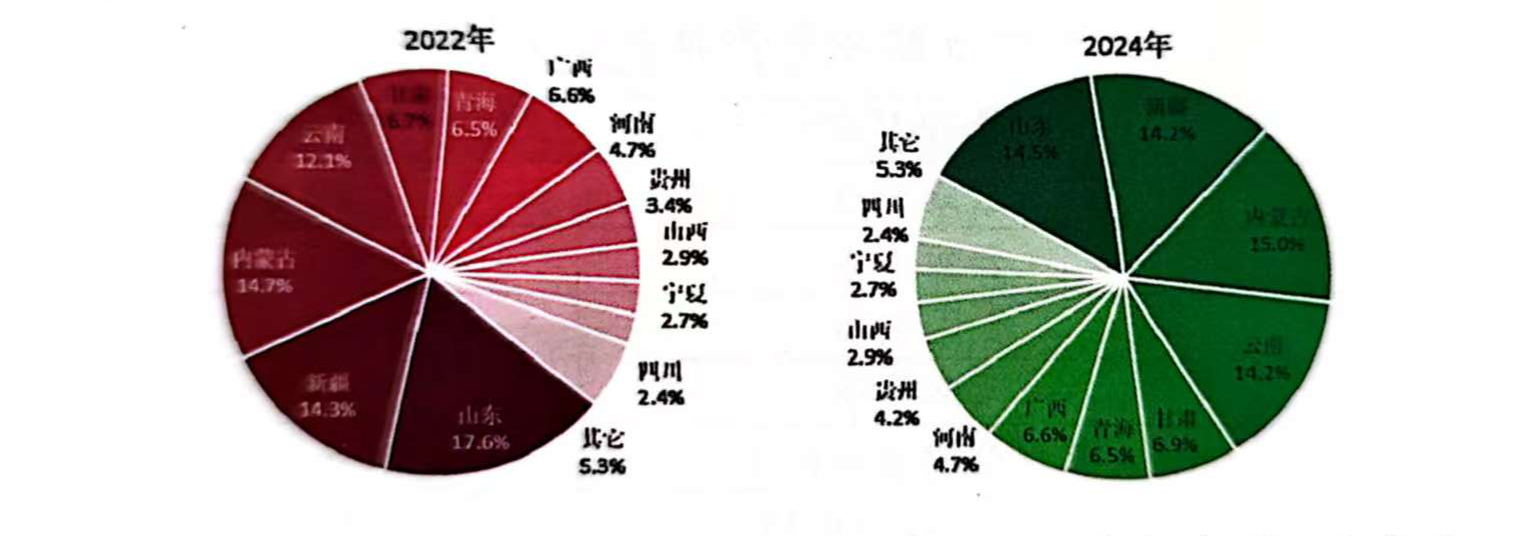 圖2-3 2023年和2024年中國電解鋁產能分布