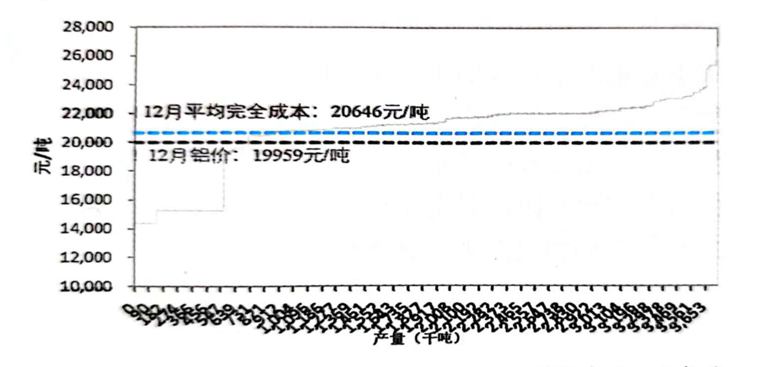 圖2-5 2024年12月中國電解鋁行業(yè)產能成本曲線