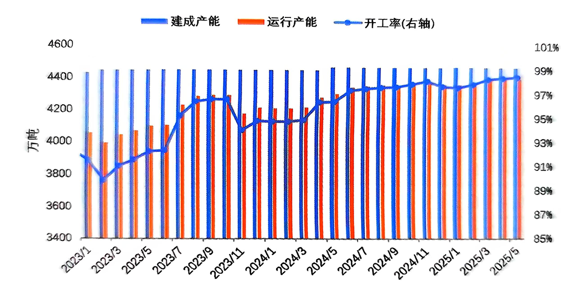 2025年5月,國內(nèi)電解鋁生產(chǎn)能力穩(wěn)中有增,截至5月底建成產(chǎn)能4467萬噸/年,運(yùn)行產(chǎn)能4397萬噸/年,環(huán)比增加4萬噸/年。本月運(yùn)行產(chǎn)能增量主要來自青海等新增項目的釋放;云南等部分地區(qū)新建項目持續(xù)投產(chǎn),但產(chǎn)能指標(biāo)均來自在產(chǎn)產(chǎn)能的置換,部分省份的產(chǎn)能和產(chǎn)量將會受到影響,但整體生產(chǎn)能力理論上不會因此而發(fā)生變化。經(jīng)調(diào)整,4月份產(chǎn)量為362.4萬噸;預(yù)計5月份產(chǎn)量為374.6萬噸,同比增長2.5%,日均產(chǎn)量12.08萬噸,與上個月基本持平。