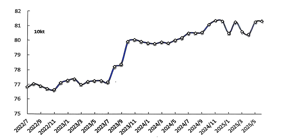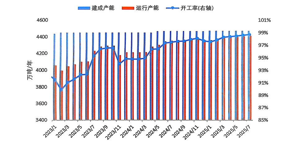 經(jīng)調(diào)整,6月份產(chǎn)量為364.5萬噸;預(yù)計(jì)7月份產(chǎn)量為376.9萬噸,同比增長(zhǎng)1.5%,日均產(chǎn)量12.16萬噸,環(huán)比小幅增長(zhǎng)0.07%。